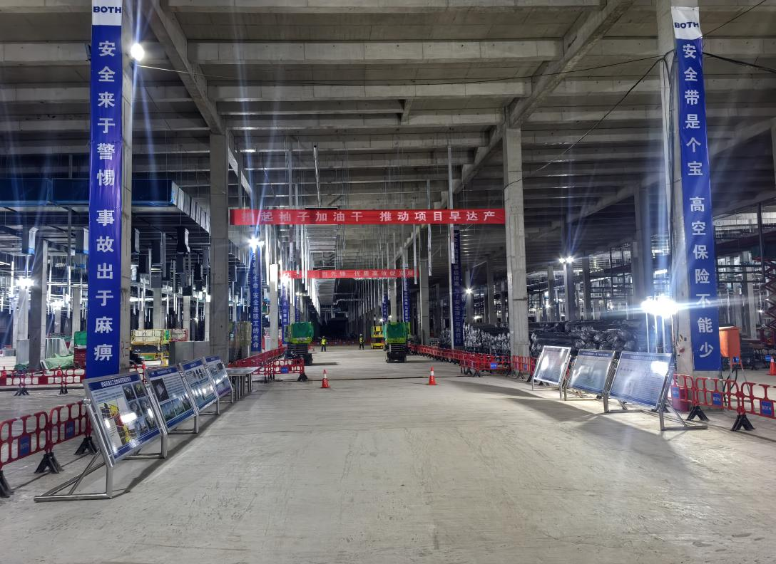 因市場需求迫切,該項目須在一年內(nèi)竣工投產(chǎn)。面對工期緊、任務(wù)重的嚴(yán)峻考驗,產(chǎn)發(fā)集團迅速響應(yīng),勇挑重?fù)?dān),積極與有關(guān)部門和企業(yè)溝通,反復(fù)優(yōu)化建設(shè)方案和工藝標(biāo)準(zhǔn)。通過不懈努力,真正實現(xiàn)“拿地即開工”。項目開工后,產(chǎn)發(fā)集團建設(shè)團隊更是與時間賽跑,通過倒排工期、奮力作戰(zhàn),全力以赴推進(jìn)工程建設(shè)。在各方共同努力下,項目僅用100天實現(xiàn)主體封頂。為確保項目2025年順利投產(chǎn),數(shù)百名施工人員春節(jié)期間仍堅守崗位,全力以赴搶抓施工進(jìn)度,力爭項目早投產(chǎn)、早見效。