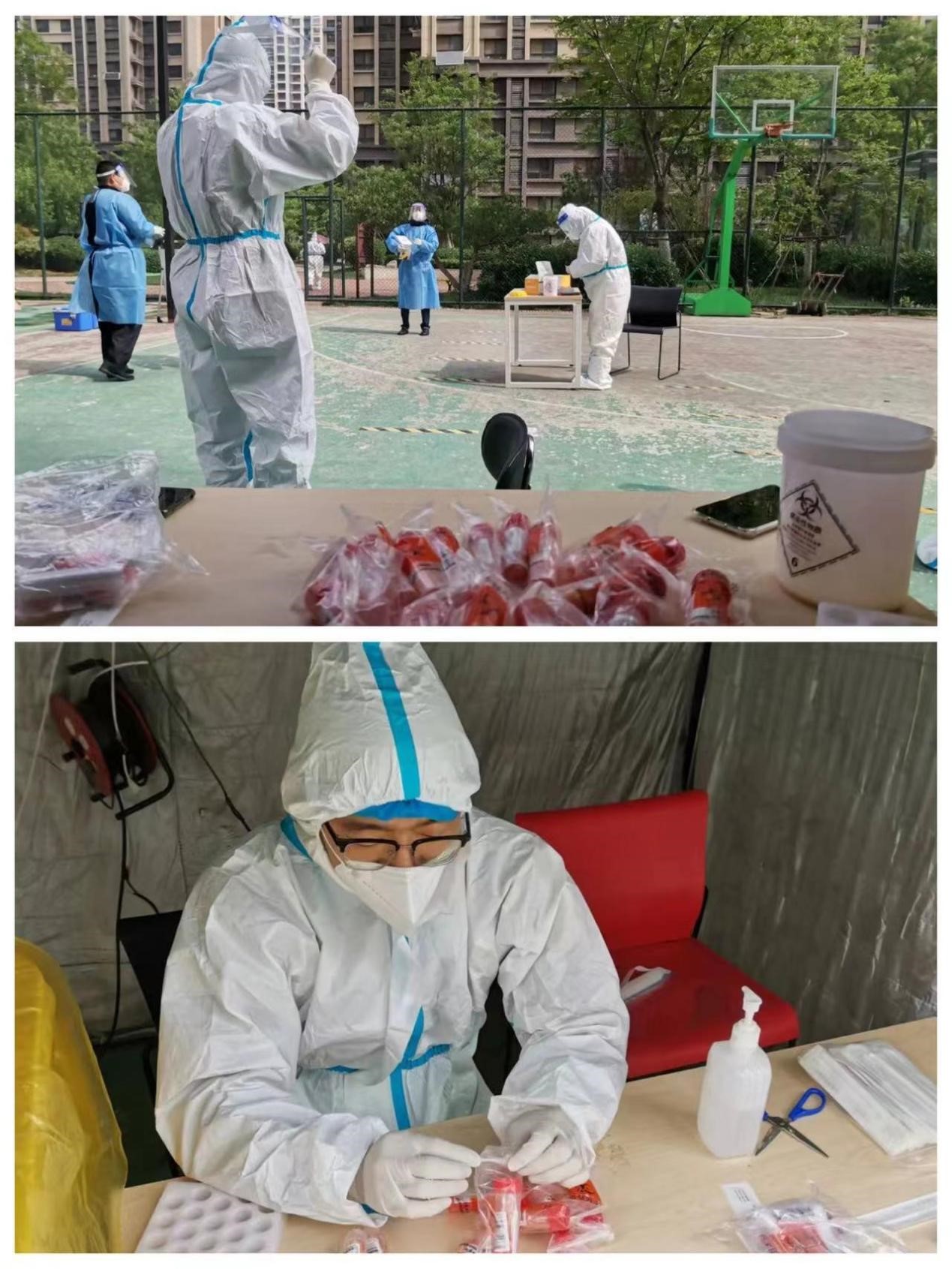 社區(qū)疫情防控情況復(fù)雜,工作量巨大,但沈俊峰始終保有退伍軍人的正直秉性,帶領(lǐng)兩位年輕人沖鋒在前。到崗第二天,三名下沉社區(qū)人員就立即投入工作狀態(tài),協(xié)助社區(qū)嚴格落實每一個居民應(yīng)檢盡檢,從早上7點到晚上11點,連續(xù)工作十多個小時,完成近3000人的核酸檢測工作。
